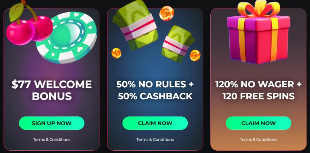 Betty Wins offers a wide variety of bonuses, especially since we offer an option for new clients. We also offer bonuses for the casino’s most loyal and active players.
